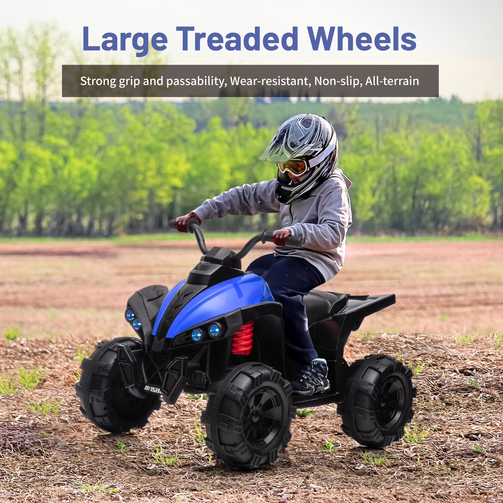 🚗Electric All-Terrain Vehicles: The large and wide tires of the electric ATV provide sufficient passability and grip, and the spring shock absorption system makes it easy to conquer grass, beaches, mud, etc. 12V 4.5Ah has a long battery life of 1.5h.
